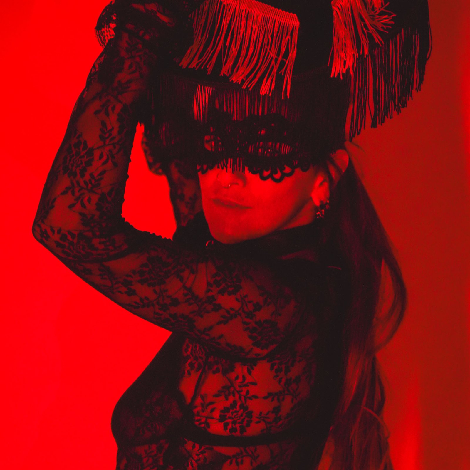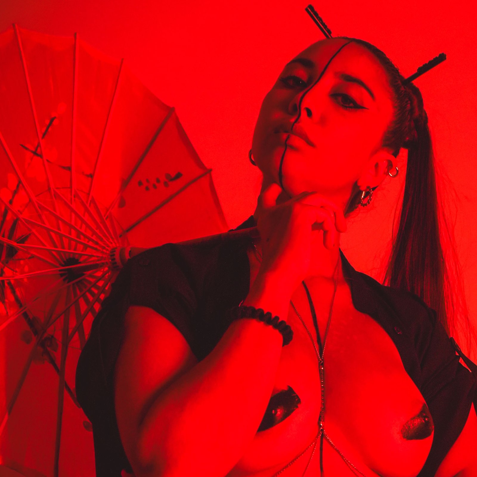 Formada en la filosofía espiritual tántrica, explora lo sagrado y lo oscuro del deseo, crea mundos sexuales alternativos de la mano del Arte performático.